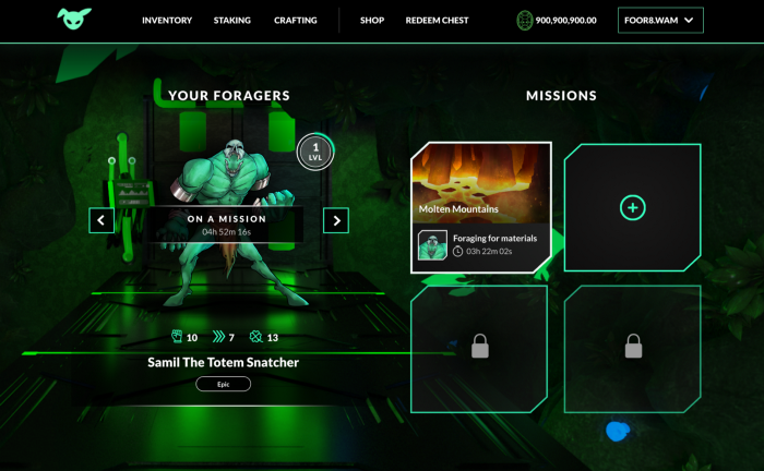 On the map, there will be three areas per biome region that can be foraged in. Each of these three areas will have increasing costs and risks, with increased potential rewards. Everyone will start with access to the “level 1” area for each of the four biome regions. As you run missions with your Forager and the Forager begins to level up, they become stronger, faster, smarter. Eventually, when the Forager reaches level 10, you will unlock the potential for sending your Forager into either “level 1” or “level 2” areas for each biome region. Again, when your Forager achieves level 25, they will unlock “level 3” as well.